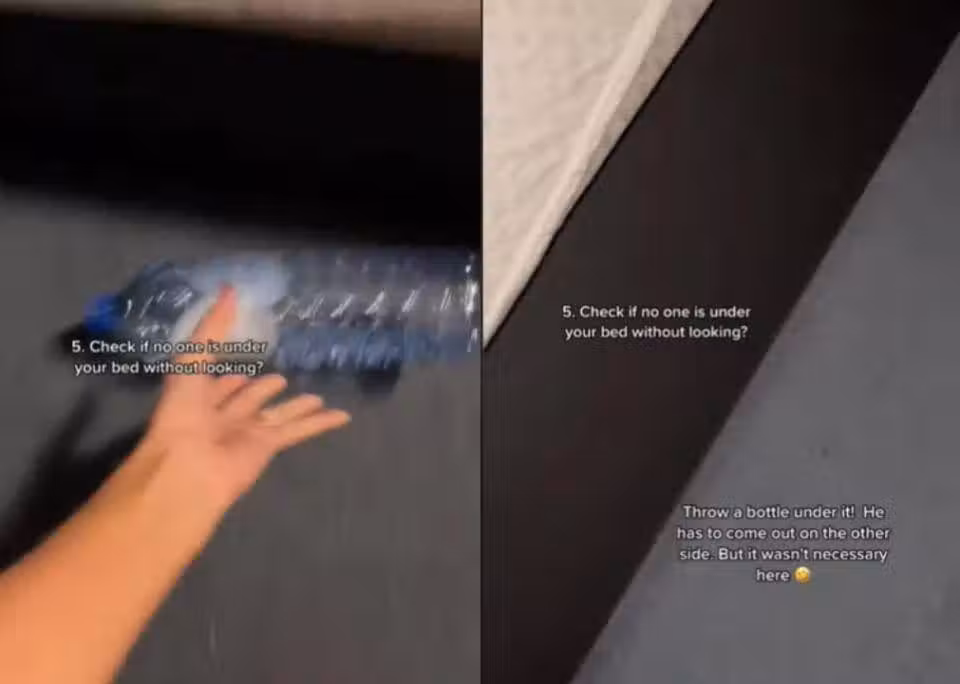 荷蘭皇家航空空服員艾絲特(Esther),經常在TikTok分享空姐生活,近來她拍攝多個入住飯店注意事項,引發不小話題。艾絲特表示,她一進房間會拿起水瓶丟到床下,若水瓶能從另一側滾出來代表床下空蕩蕩,如此不必靠近趴下就能確認有無入侵者,但前提是床下沒其他障礙物。