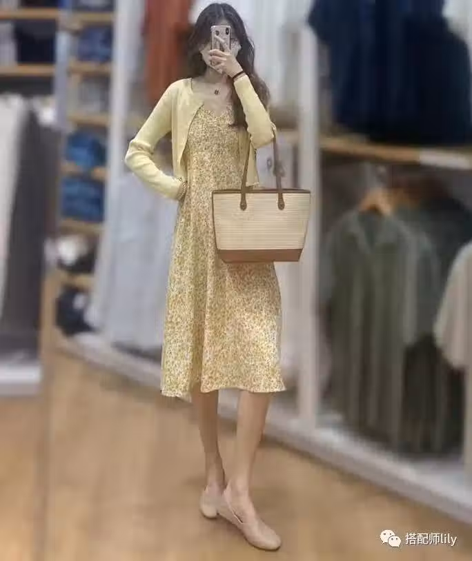 有些偏a字版型的裙身,胯寬、腿粗的姐妹都可以穿得好看顯瘦,黑色一字帶涼鞋的加入,又多了幾分女人味和氣質。