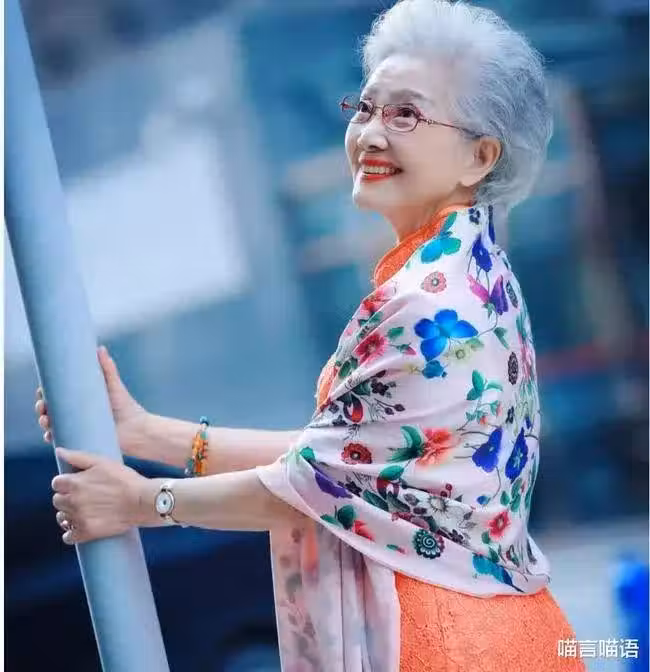 奶奶一頭白髮,面容姣好,著一襲紅裙,臉上帶著溫暖的笑容、邁著優雅從容的步伐,走在路上簡直是一道靚麗的風景線,引得路人駐足。