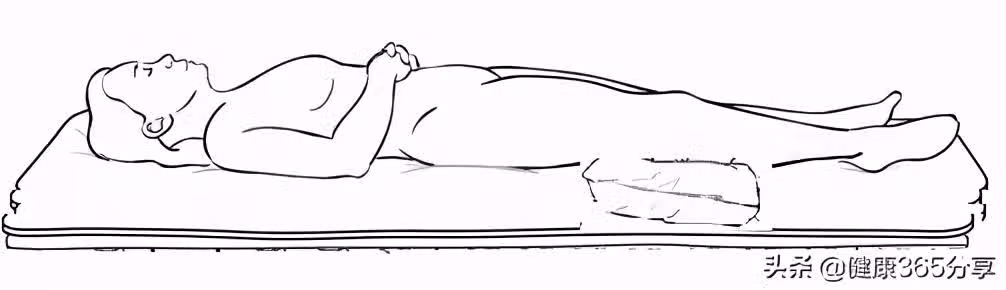 比如上圖:仰臥的時候可以放一個枕頭在膝蓋下,使你的脊椎保持自然的曲線,