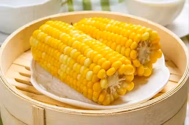 新鮮玉米買來後,把外皮剝掉幾層,剩下最後那層就行,用水沖洗乾淨,放到鍋子裡。之後,往鍋子裡倒入清水,再來少許鹽、食用鹼,作用分別是讓玉米更香甜、更黏稠。大火燒開,繼續煮15分鐘,關火燜2分鐘,撈出來開吃。