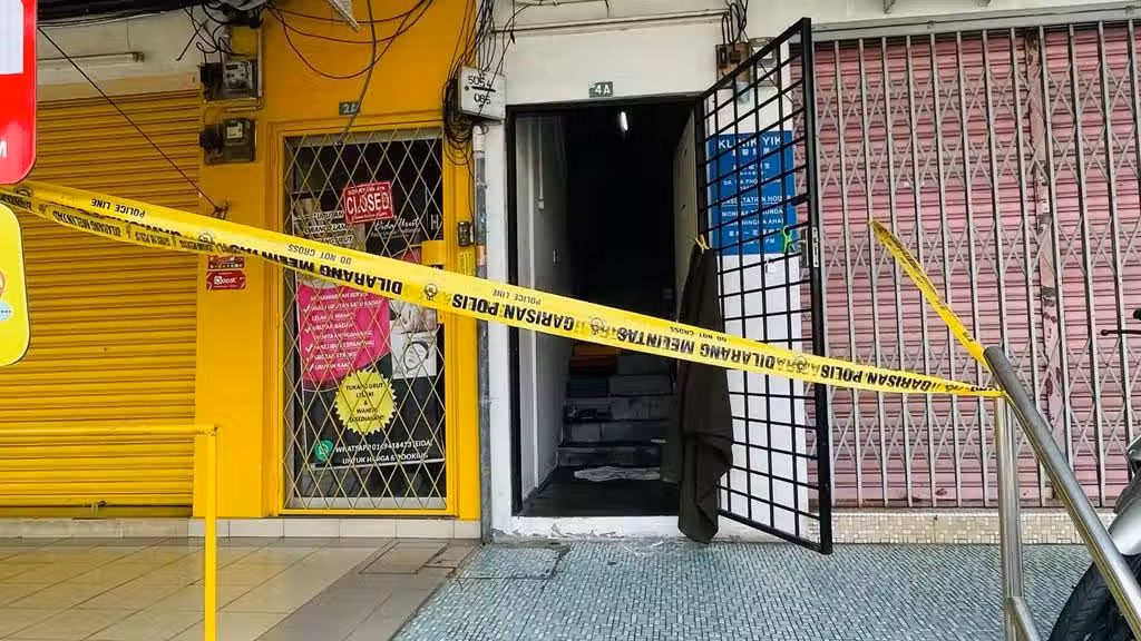 命案發生後,警方在店屋樓下拉起黃線,以禁止任何人進入現場。