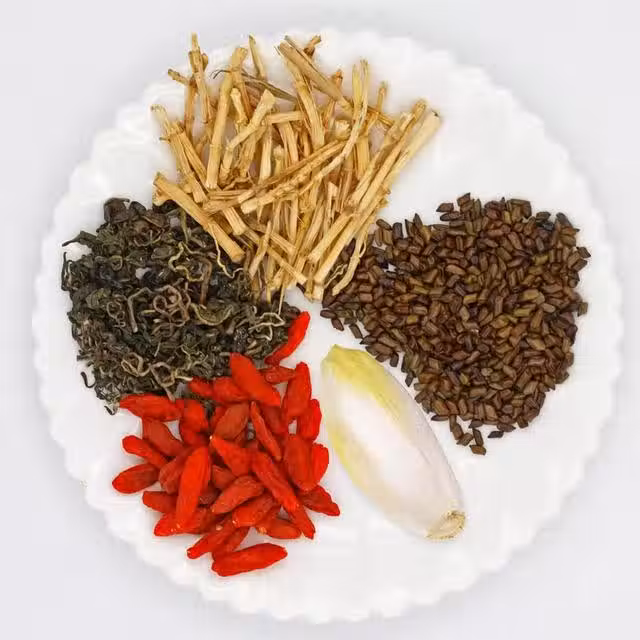 菊苣、蒲公英、決明子、白茅根、枸杞各5克,加水熬煮45分鐘,取汁水飲用。