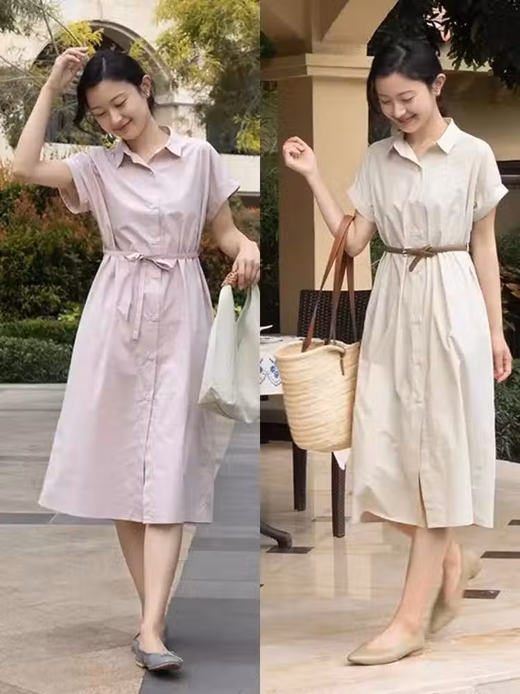 不僅如此,襯衫連衣裙自帶一種簡潔、大方的時尚感,再配合96%的純棉面料,穿著舒適又有格調,女性魅力也得到了完美釋放。