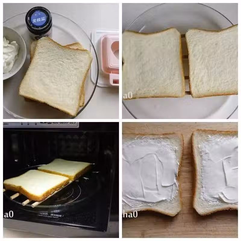 5、 乳酪上塗抹一層藍莓果醬,果醬塗抹在一片吐司上即可