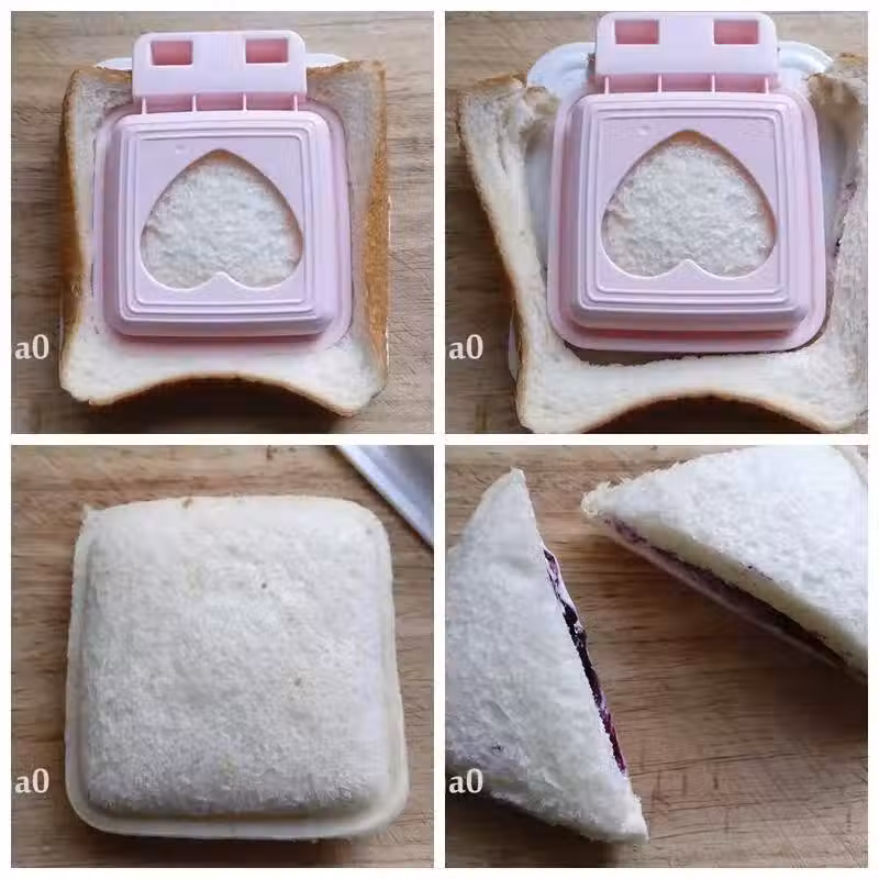 2、 吐司加熱後非常軟,用工具可以輕鬆把邊裁下來