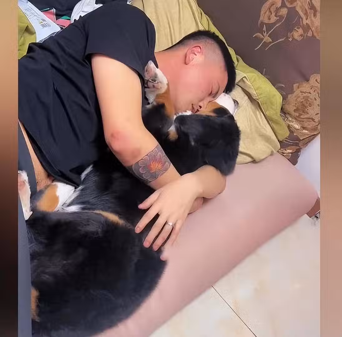 「能摟狗說明男子是個善良的人。」有網友這樣認為。