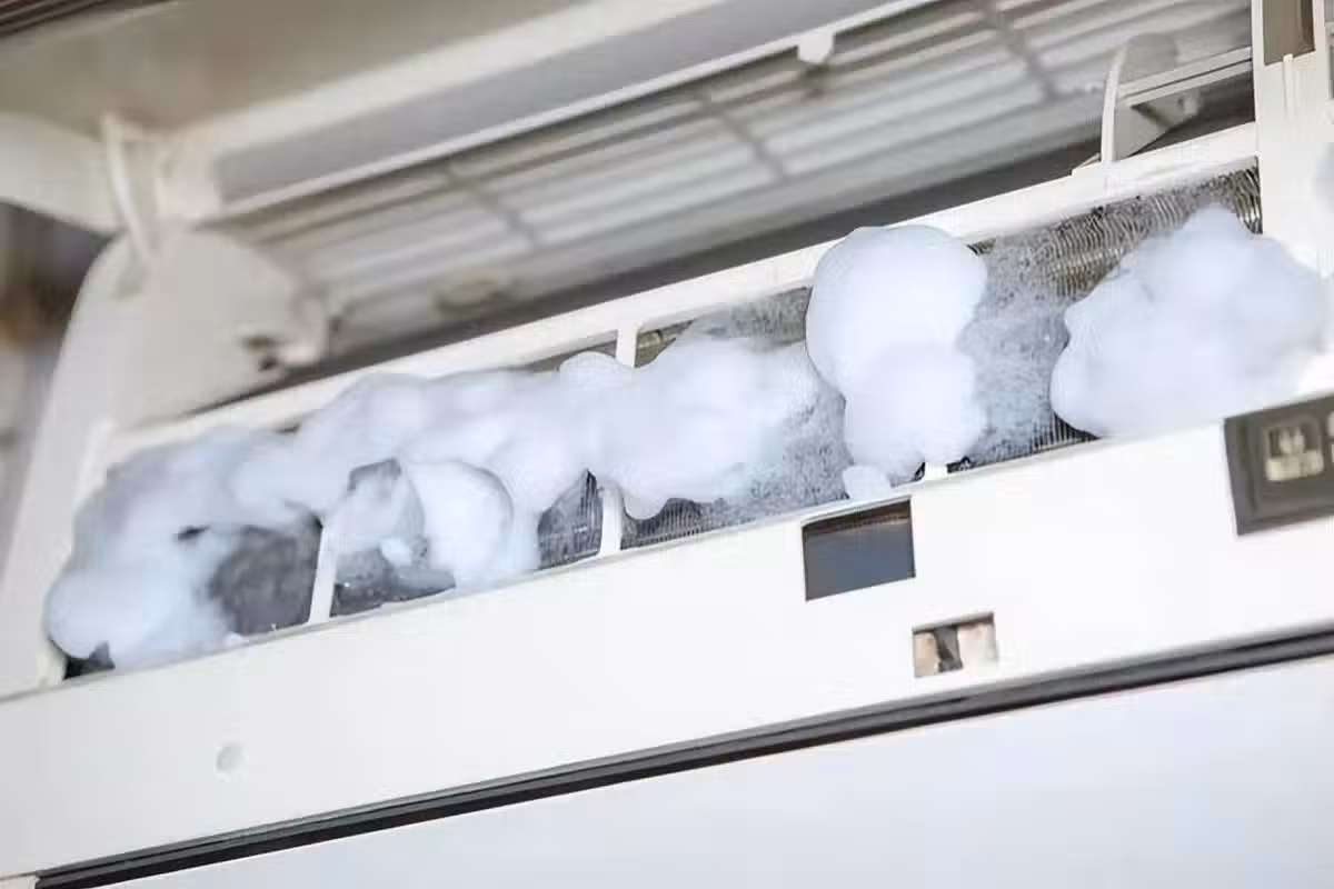 綿密的泡沫能夠將污垢細菌包裹住,清潔過後再接通電源,啟動空調,臟東西就跟著排污管道排走了。