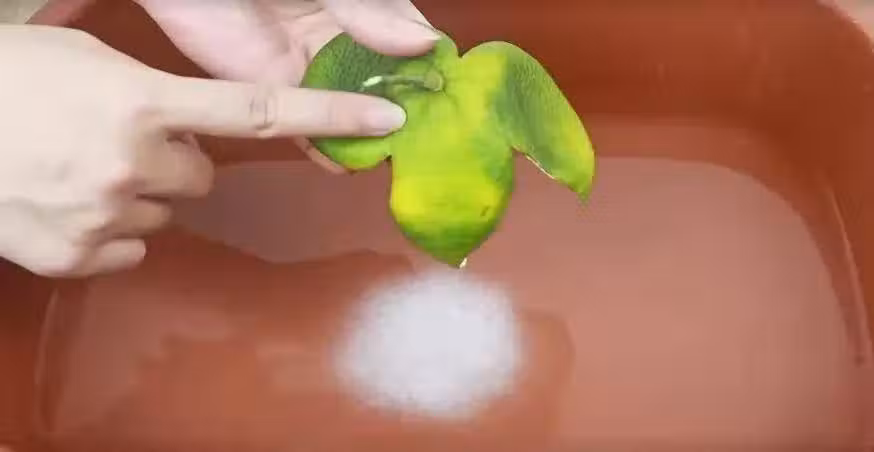 最重要一步來咯,大家然後把桔子皮掰成小塊隨後裝進去,這時候再將它們攪拌均勻。 這個時候的這盆水呢,它清理能力就強大了。