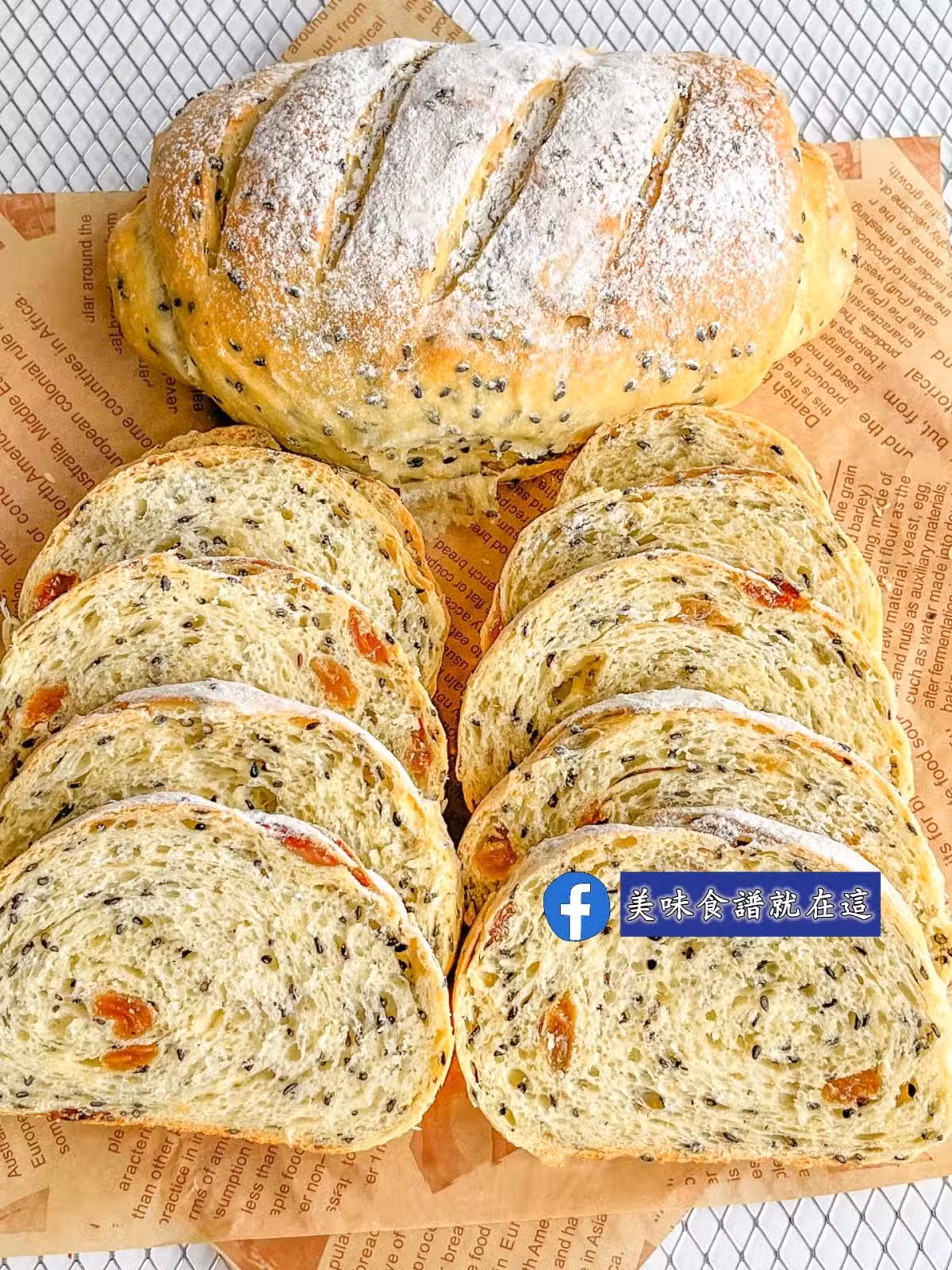 免揉面黑芝麻提子麵包,簡單好做,柔軟拉絲,免揉麵包做法分享來啦~