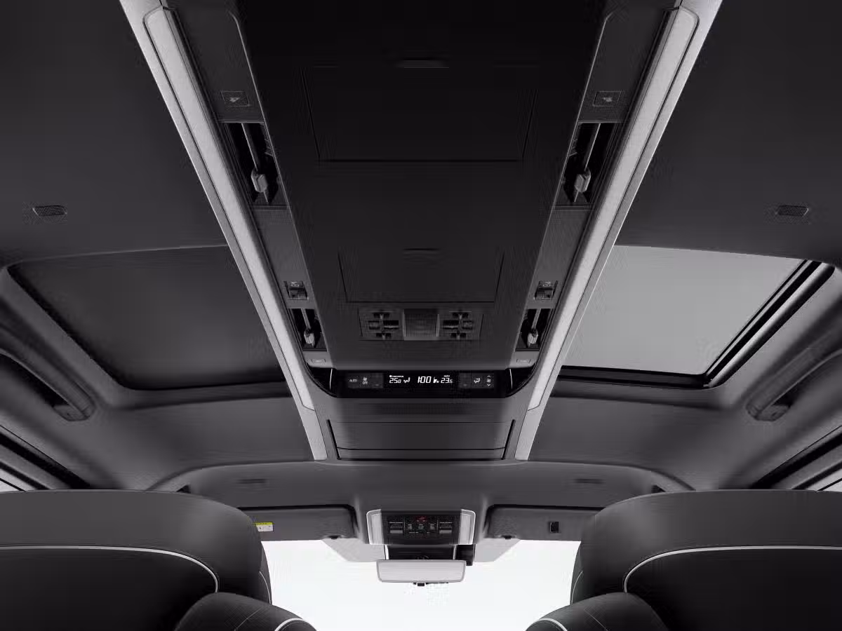 值得一提的是,新車還首次引入行政酒廊概念,車頂玻璃天窗被分割為左右兩側,並可獨立開閉遮陽板,下拉式電動側遮陽簾同樣是首次使用。