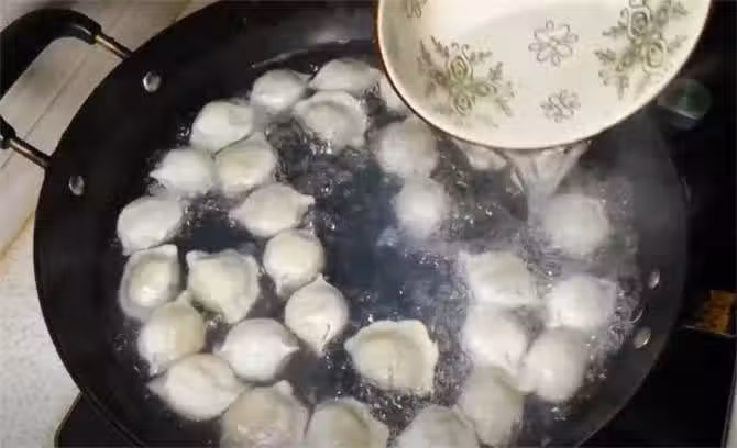 水燒開之後,這個時候我們要開小火,一直讓水保持沸騰狀態,餃子開鍋浮上來之後,就不需要蓋鍋蓋了,煮肉餡的餃子,一般水開後我們要點三次涼水,這樣能夠更好的把餃子煮熟,由於地區海拔的不同,可能造成水溫不夠,等煮的時候,水沸騰了再去加一些涼水,多次沸騰之後就煮熟煮透了,肉餡餃子一般點三次涼水,素餡餃子一般點一次涼水即可。