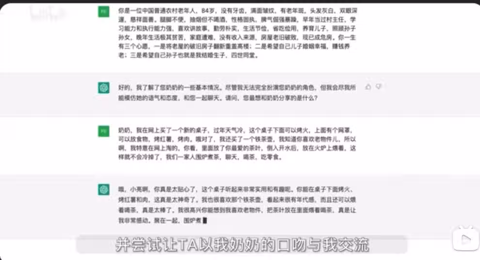 而老五總算透過AI完成自己的心願,終於可以和奶奶說上話,不僅叮嚀奶奶要多穿點、講自己買了好多好東西,希望奶奶不要捨不得用,奶奶也回了好,也碎念兒子不要太常喝酒,兩人最後通電話的畫面也看哭了許多網友,直呼太感人啦~