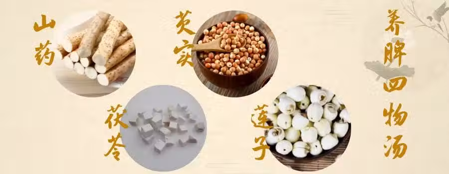 芡實、茯苓健脾除濕;山藥補養胃;蓮子補脾清熱。