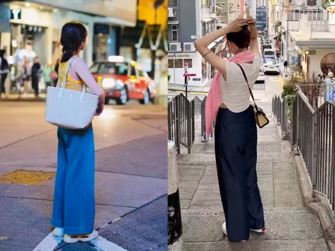 被香港街拍女生驚艷了!滿大街都是「闊腿褲和淺口鞋」,看似簡約卻個個高級