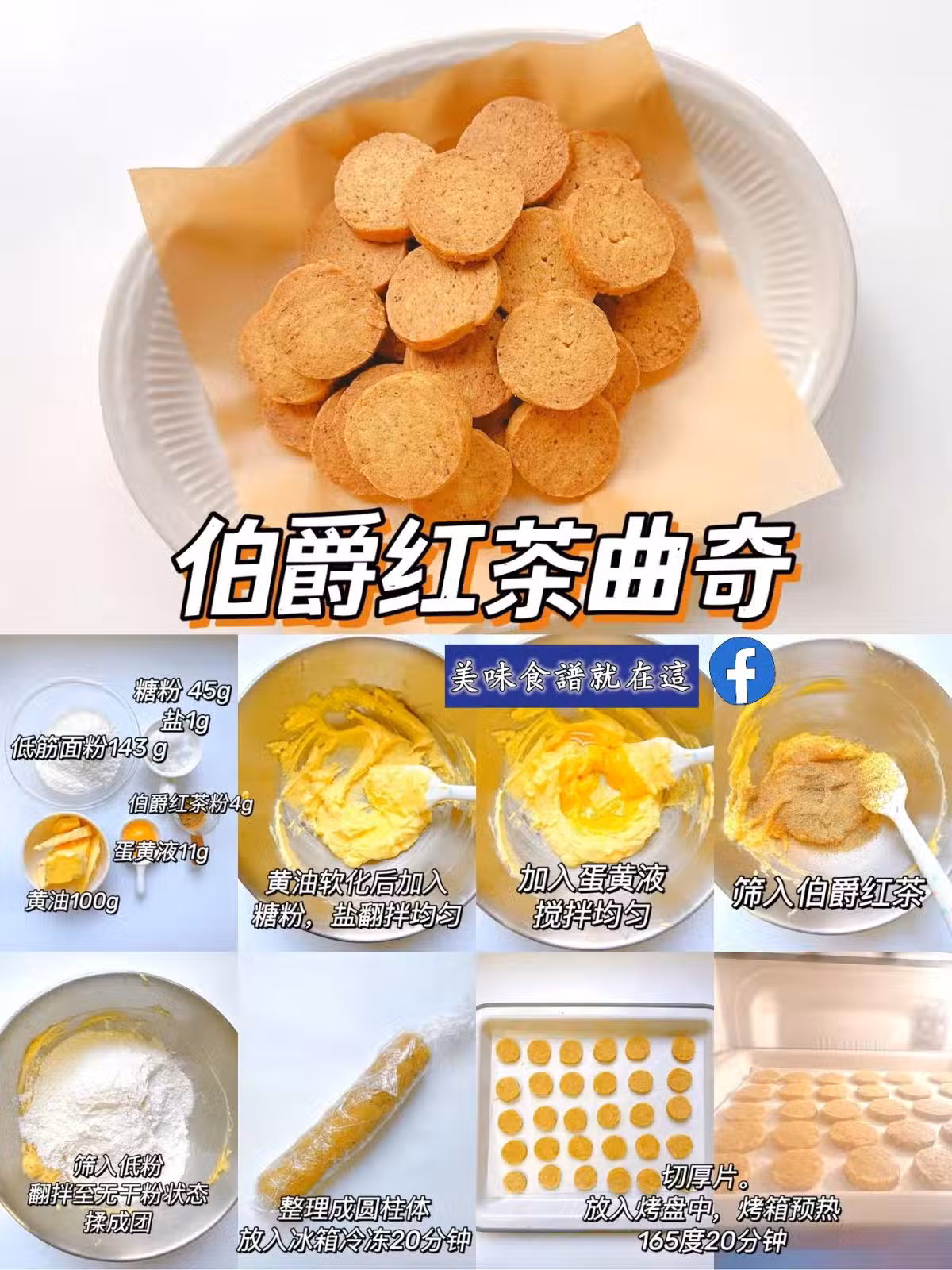 食材:糖粉 45g、鹽1g、低筋麵粉743g、伯爵紅茶粉4g、蛋黃液11g、黃油100g