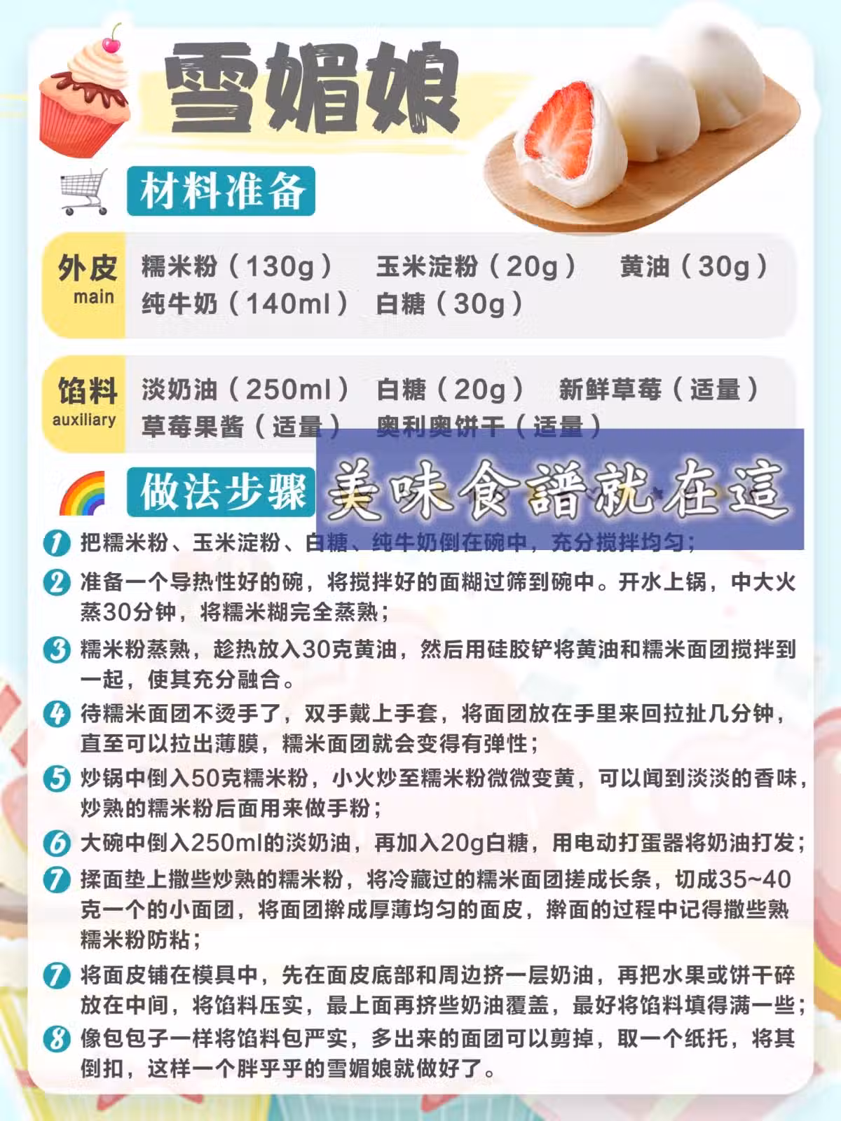 外皮:糯米粉130g、玉米澱粉20g、黃油30g