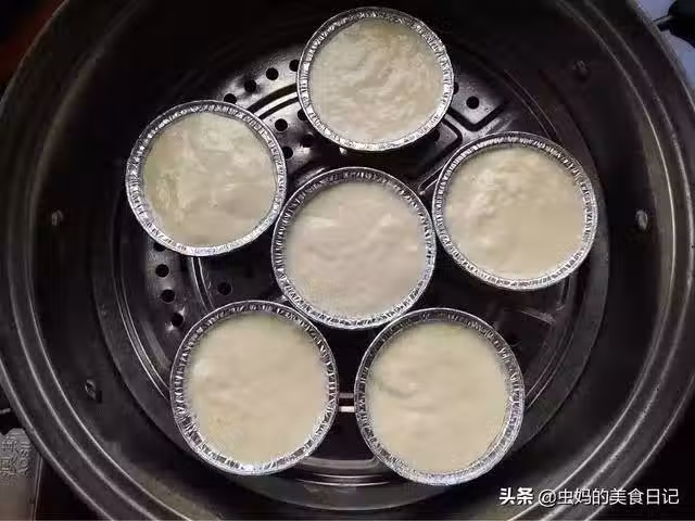 8、開火蒸20分鐘,時間到之後,不要著急打開鍋蓋,再燜五分鐘,避免鬆軟的小米發糕遇冷回縮塌陷,然後拿出來往盤子上一扣,就可以輕鬆脫模了。