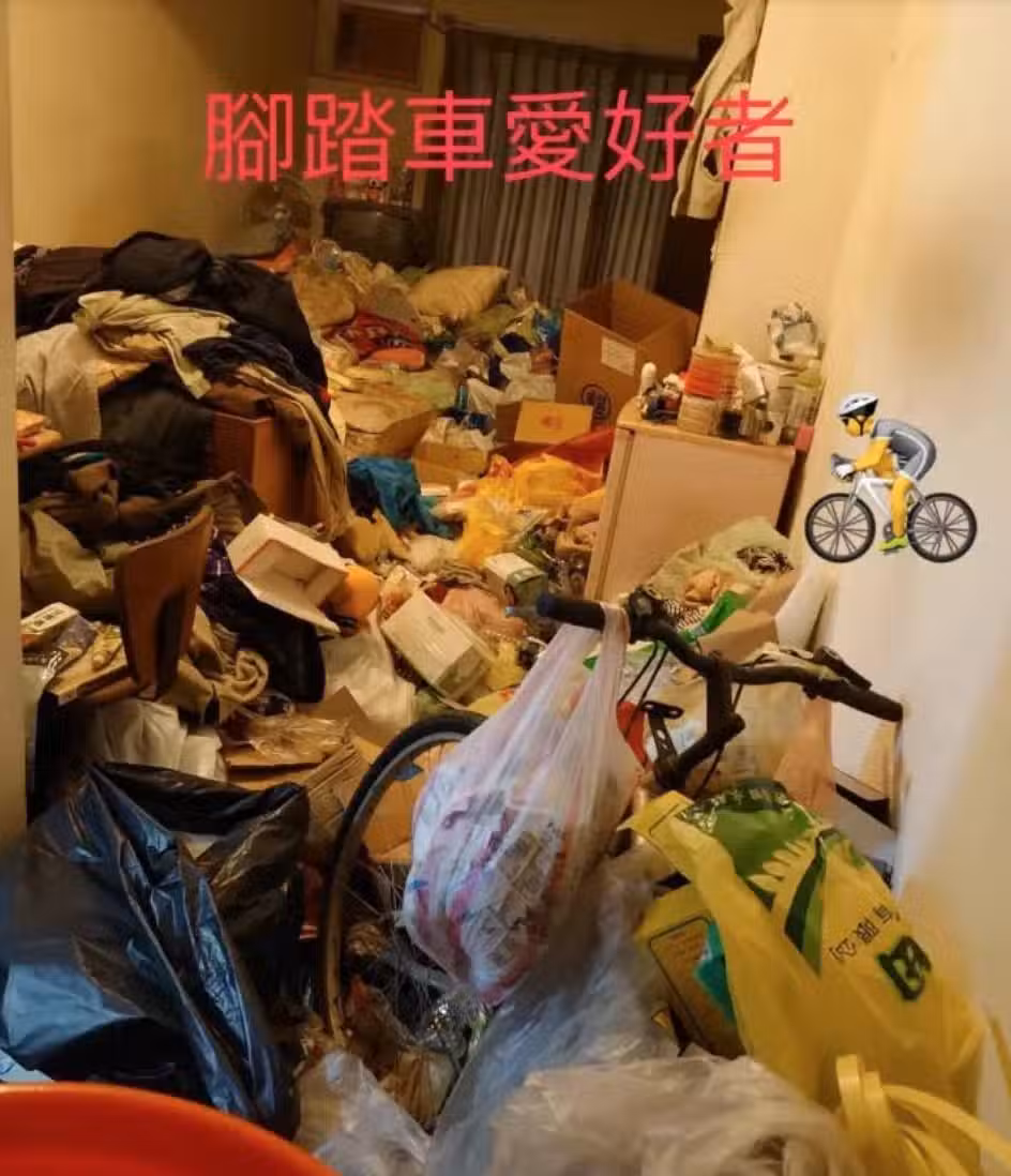 整間房間亂成一團,也讓原PO忍不住大嘆:「除了這一間,房東的另一間房子也遇到恐怖房客,滿山的垃圾上面還有腳踏車,應該是腳踏車愛好者。」