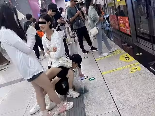 女友等車腳痠!瘦弱男蹲地「當她的人肉座椅」奴隸畫面曝光 引網2派討論:「這種女生敢娶?」