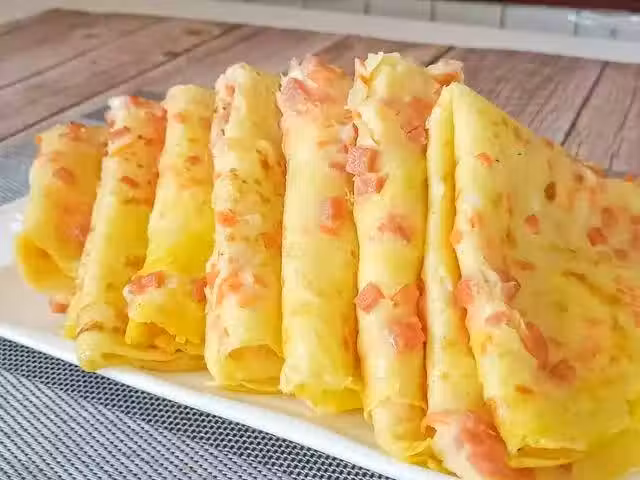 簡單幾步,一道蔥花雞蛋餅,就做好了,薄薄一層,軟糯十足,咬上一口,既有蔥香還伴隨奶香,用來卷上土豆絲或者是小菜食用,那味道更是一絕!剛一上桌,瞬間搶光!