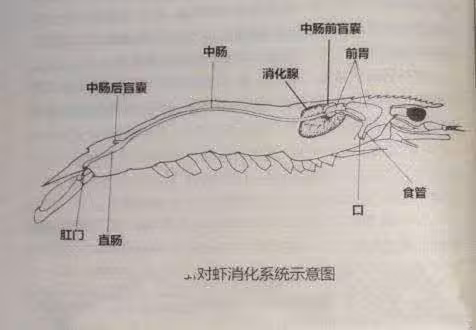 1.從上圖我們可以看到,在蝦的頭部主要有消化腺(水產上叫肝胰臟)、中腸前盲囊、胃以及食道和口。