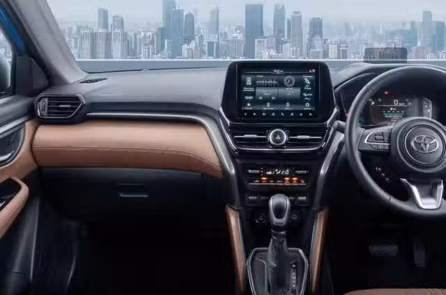豐田Urban Cruiser Hyryder採用雙色內飾,棕色和黑色拼接,儀表台上有一個9英寸觸摸屏和一個7英寸數字儀錶盤。鈴木的駕駛模式選擇開關也出現在中控台上。