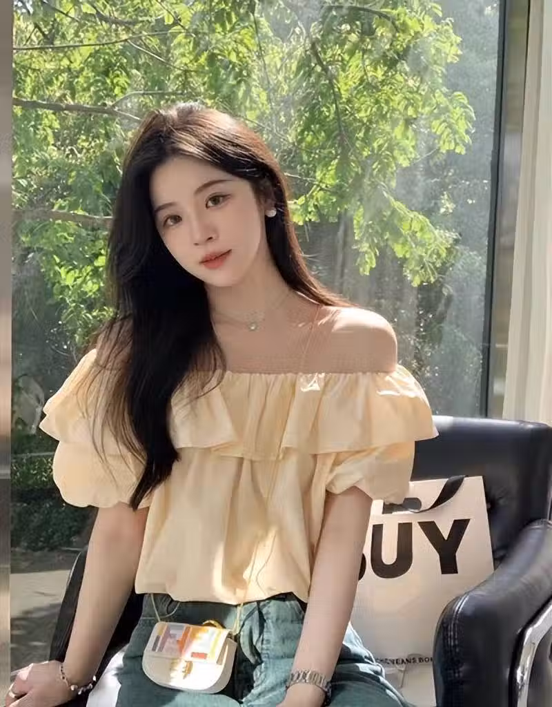 v領設計的雪紡衫有效的解決了胸大和無脖頸線條的問題,而配上泡泡袖的設計化解v領的性感,溫柔有女人味,肩窄女孩推薦這款。