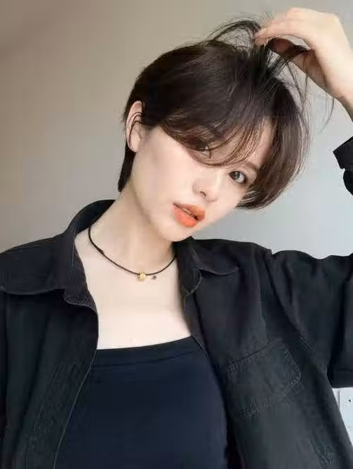 這位女士選用的短發造型其實也是很簡潔的,內扣的弧度可以增加柔美的氣息和溫和的氣質,劉海的呈現也有著固定的弧度,可以幫助她遮蓋住不算太飽滿的太陽穴或者是額頭,同時極為快速的削弱了短發的中性感。