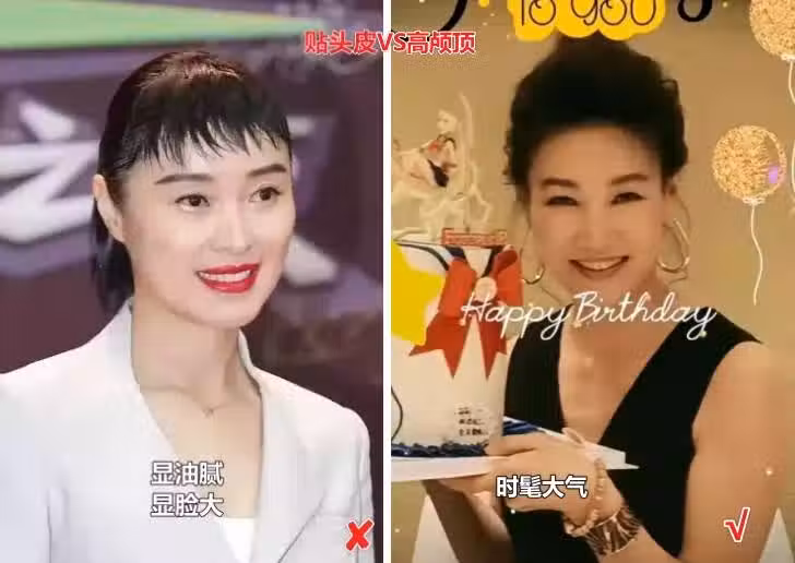 說到這里,就不得不提及高顱頂,相比於貼頭髮的油膩感,高顱頂蓬鬆髮型似乎也成為了中年女性打造氣質髮型的時尚密碼,盤發,扎發時,綁發固定處稍微松一點就可以做到。