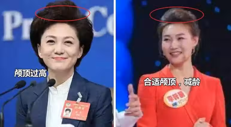 不過,顱頂也不是越高越好的,茂密髮量之下+夸張的蓬鬆感,太過厚重顯老,一般來說,顱頂高≈額頭高即可。