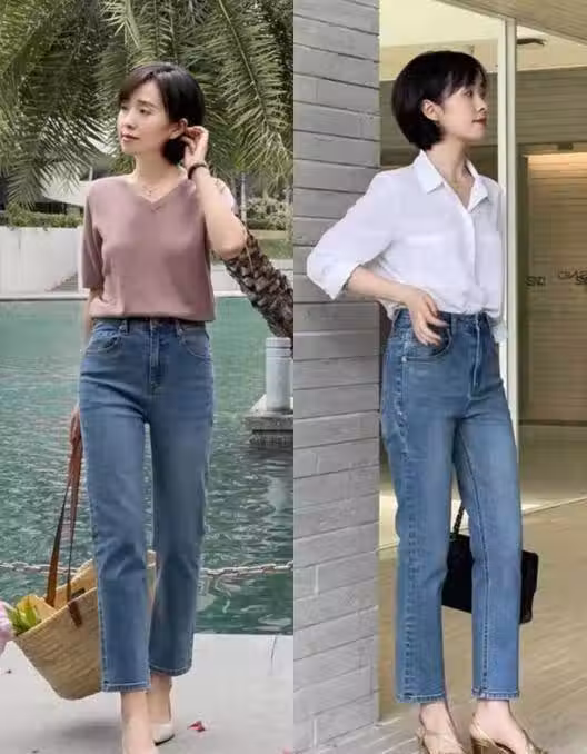 選擇V領設計的上衣,能夠拉長頸部線條,使脖子看起來更修長,同時也能夠凸顯鎖骨和胸部曲線。而直筒版型的下裝能夠突出腿部線條,展現出修長的美感。搭配露膚感強的鞋子,這種組合既能呈現休閑風格,又能展現出性感和時尚度。