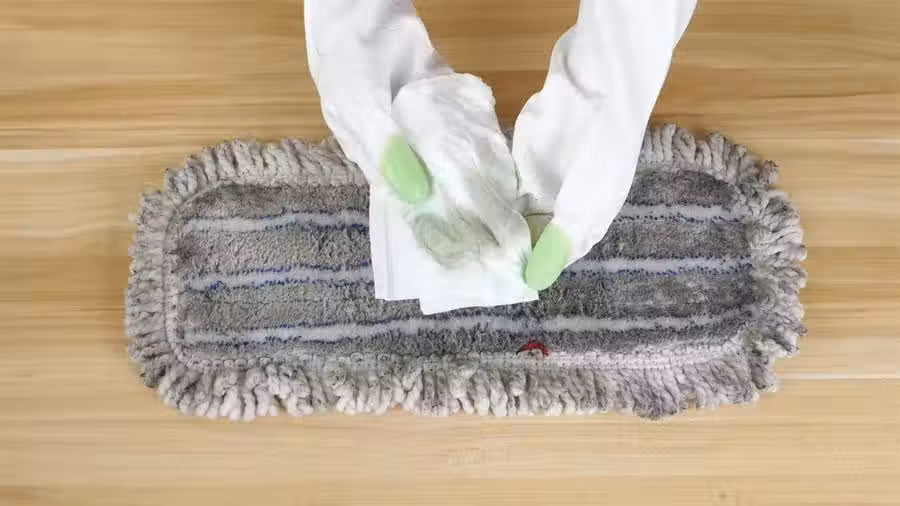一勺食用堿,幾滴洗潔精,攪拌均勻,然後把拖把放進臉盆中,同樣浸泡十分鐘。