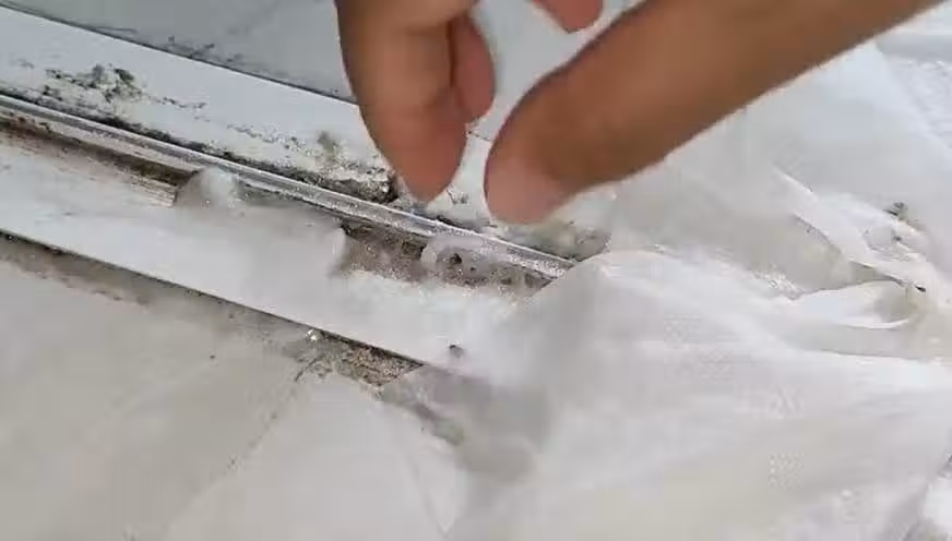 時間到了之後,我們把紙巾取下來,我們來看一下,這個污垢很快就被溶解開了,沒有溶解的部位,就是很難弄下來的,我們把紙巾完全的去除干凈。