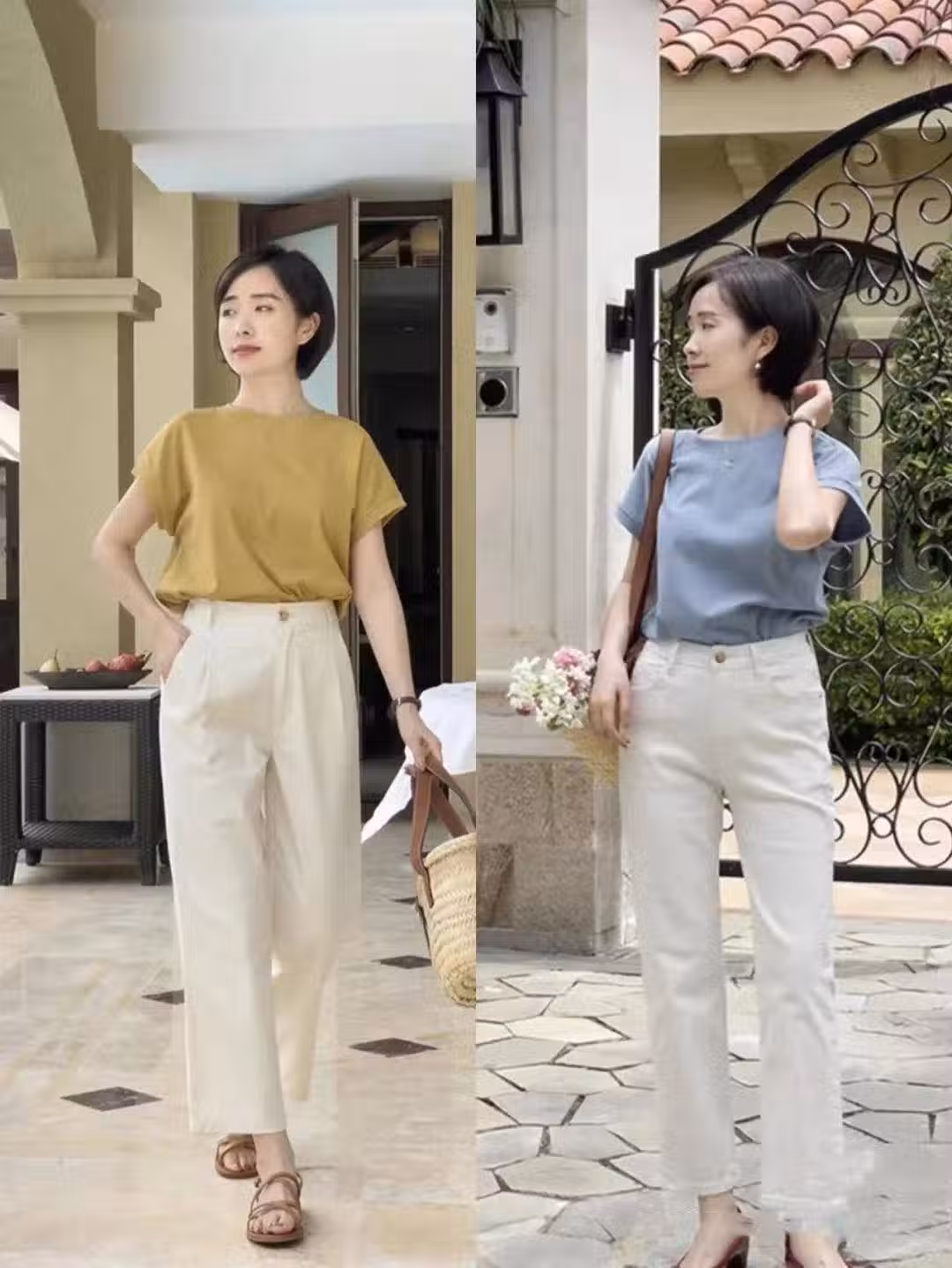 T恤是最基礎款的單品,每個人的夏天都要準備幾件T恤。中年女性選擇T恤的時候,並不要太寬松或者太緊身的設計。適當的舒適度,才更加優雅高級。