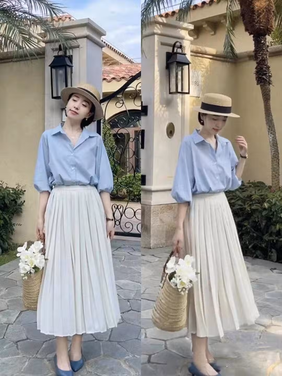 日常的穿搭中,襯衫裙是一種高級又利落的單品,純白色的配色清新優雅,可以更好地模糊年齡感,具有更加充分的減齡效果。