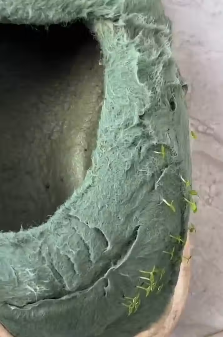 王小姐納悶怎麼洗個拖鞋反而發芽了?問了老公他才坦言,因為當時看她鞋子外層挺髒的,就先浸泡在水裡,想說泡一下再刷洗會比較容易洗乾淨,沒想到泡著泡著就忘了這件事,鞋子就這樣大概泡了半個月後,老公才又想起來,趕緊在她返家前拿起來並掛在洗手間內晾乾。