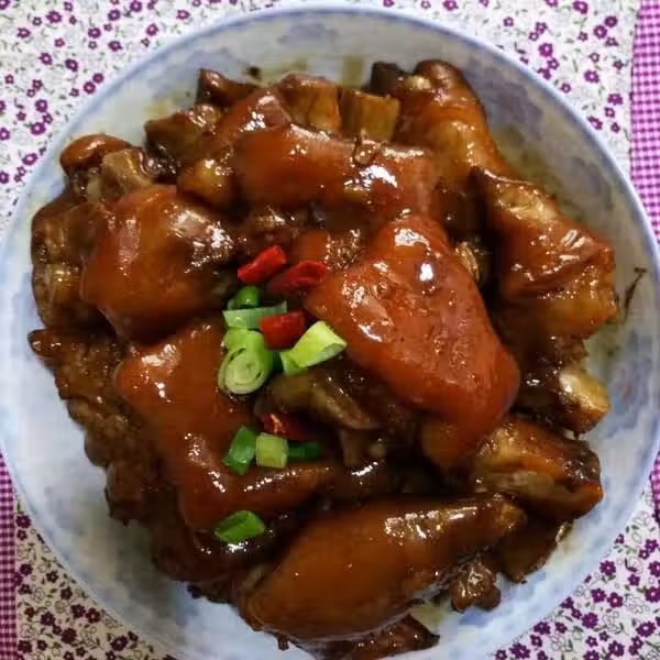 10.大火煮沸後轉高壓鍋30分鐘,最入加少許糖收汁,最後用紅椒圈和蔥裝飾