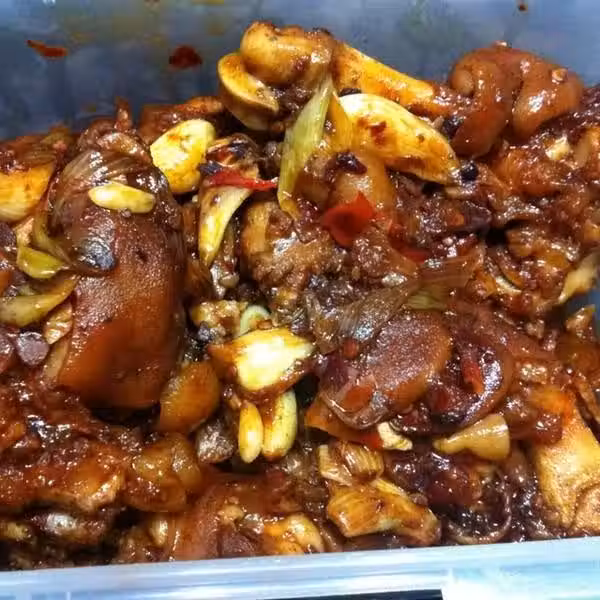 用料:豬蹄、花椒、麻椒、干辣椒、八角、蔥、姜、大蒜