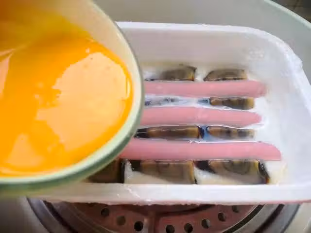 6、再次蓋上保鮮膜,二次上蒸鍋,繼續蒸煮10分鐘,就可以取出。