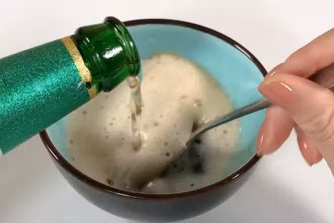 首先我們來調制「滅蚊液」,準備一個容器,在容器中倒入一勺紅糖,再倒入一勺蜂蜜,最後倒入適量的啤酒,用勺子將它們稀釋溶解就可以了。