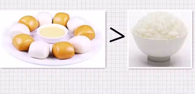 熱量:饅頭221大卡/100克 >熟米飯116大卡/100克