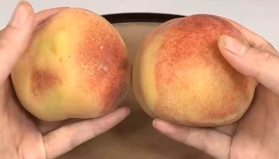 第三,我們可以觀察桃子中間的裂縫。大多數桃子中間都會有裂縫,但我們要選擇裂縫較深的桃子,因為這樣的桃子更加成熟,口感更甜美。相反,如果桃子表面只有一條淺淺的線,而沒有凹陷,那麼這種桃子可能還比較青澀。