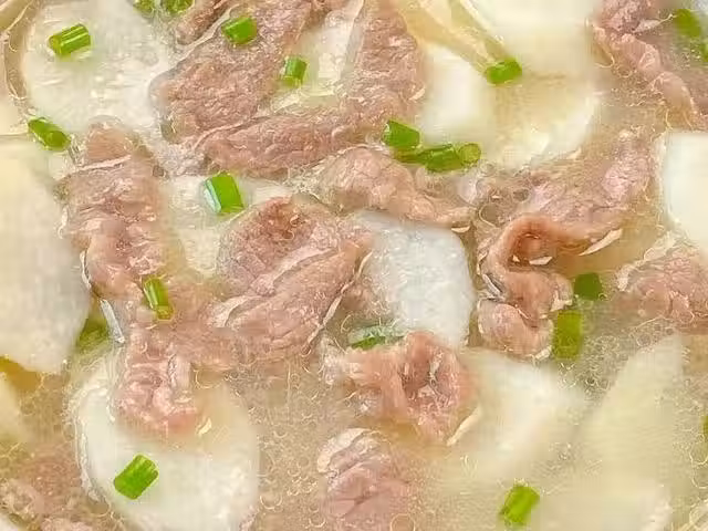 準備食材:山藥,牛肉,蔥花,蔥段,薑絲。