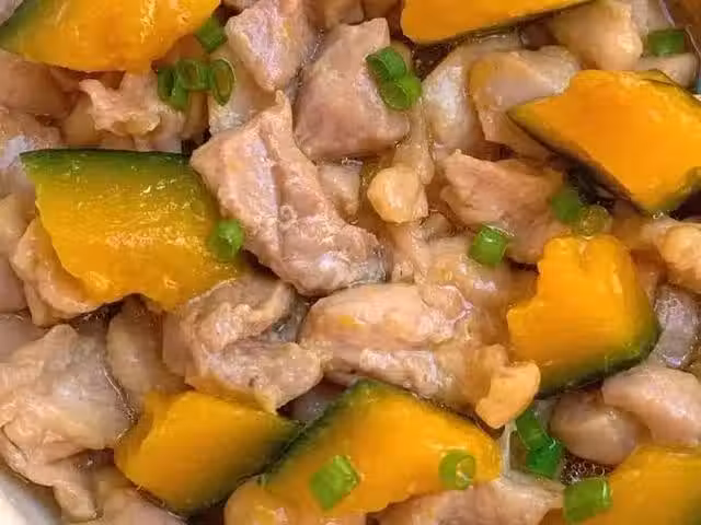 準備食材:雞腿,貝貝南瓜,薑絲,蔥花。