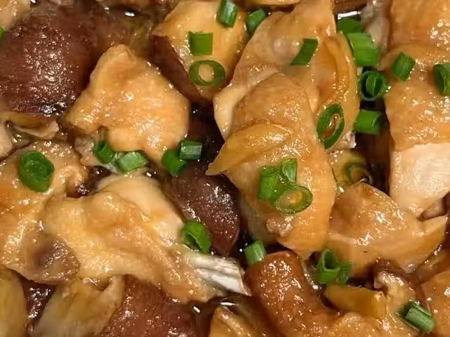 準備食材:雞肉,鮮香菇,金針菇,薑絲,蔥花。