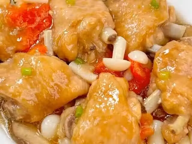 1、雞中翅清洗乾淨,對半剁開後加入薑片、醬油、澱粉和食用油,抓拌均勻腌制二十分鐘。