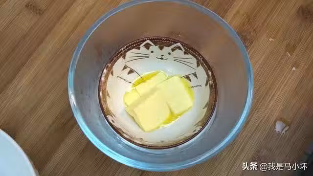 2、再準備25克黃油,切小塊,方便溶化,用隔水加熱溶化的方法把黃油化開。