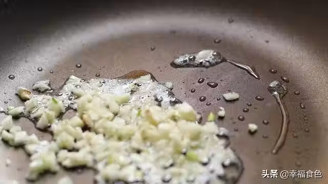 4、放入肉末翻炒鬆散。一邊按壓一邊翻炒,肉末會慢慢變色並散開,如果是一坨一坨的說明剁的不成功,肉最好切成小塊再剁碎。