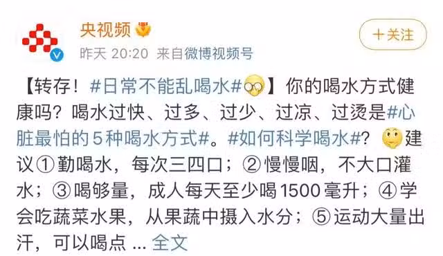 水是人體的生命之源。在日常生活中僅僅靠飲食中獲取水分,是遠遠達不到人體需求的。喝水的時候要注意,不要喝過熱的水和冰水,因為過熱會損傷口腔腸胃黏膜,而冰水容易誘發女性痛經,最好是把熱開水放溫喝。